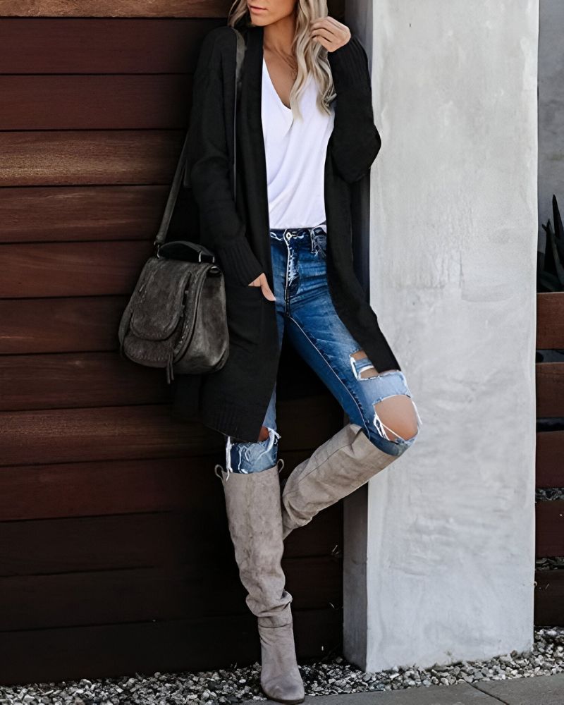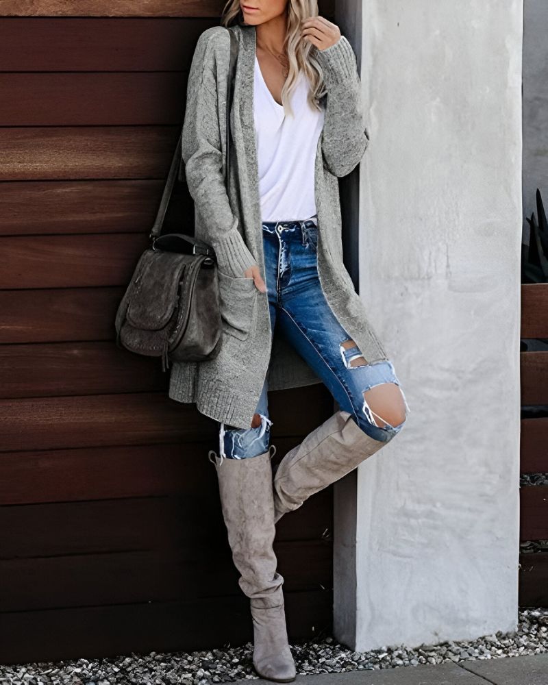 Stay effortlessly stylish and comfortable with the casual knit pocketed cardigan your go-to layer for everyday outfits.