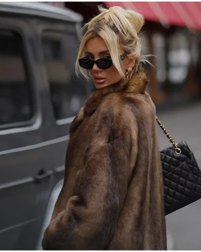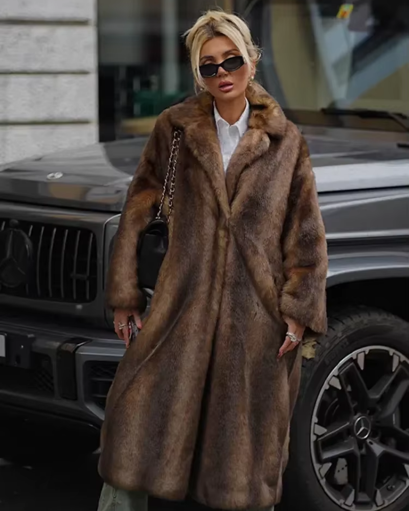CASSEY - Brown Faux Fur Long Overcoat