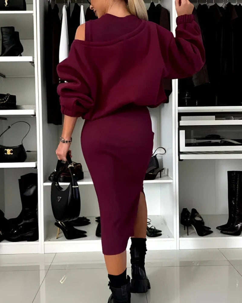 The ultimate all-season two-piece dress, Aryna combines a chic midi skirt with a snug, stylish sweater. This versatile set is the perfect choice for staying cozy and sophisticated during chilly days, whether for casual outings or formal events.