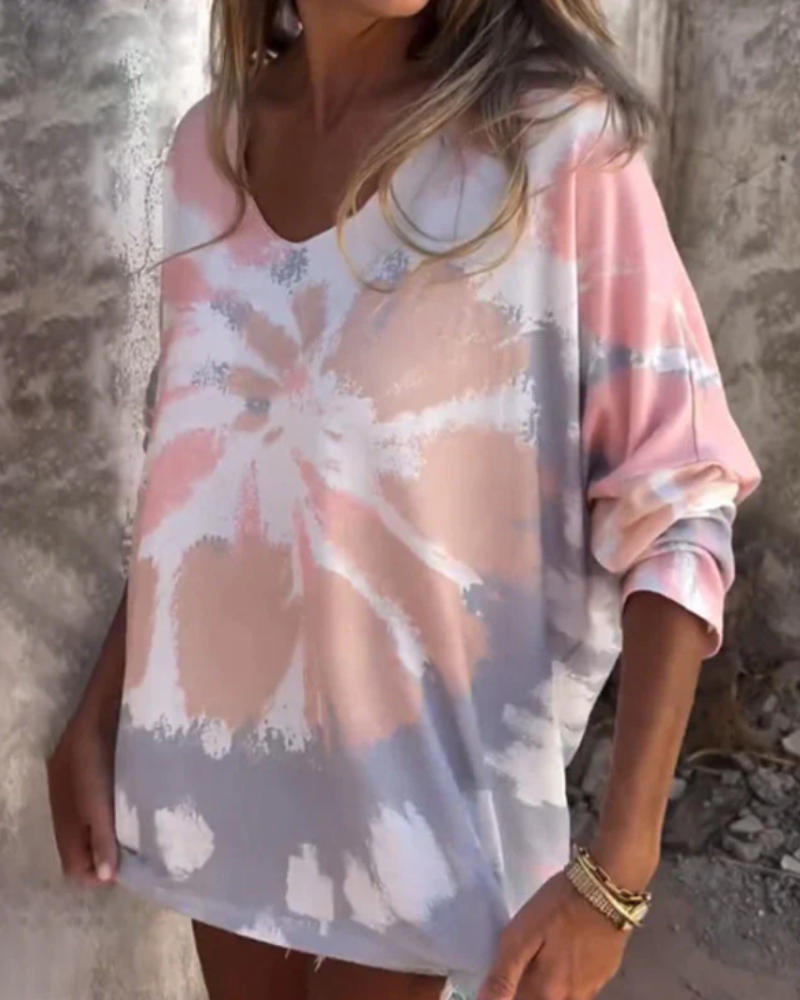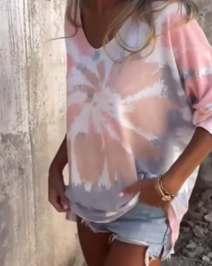 With its flattering V-neck and loose fit, it's the perfect blend of fashion and ease. Pair it with jeans, skirts, or shorts for a versatile, stylish look.