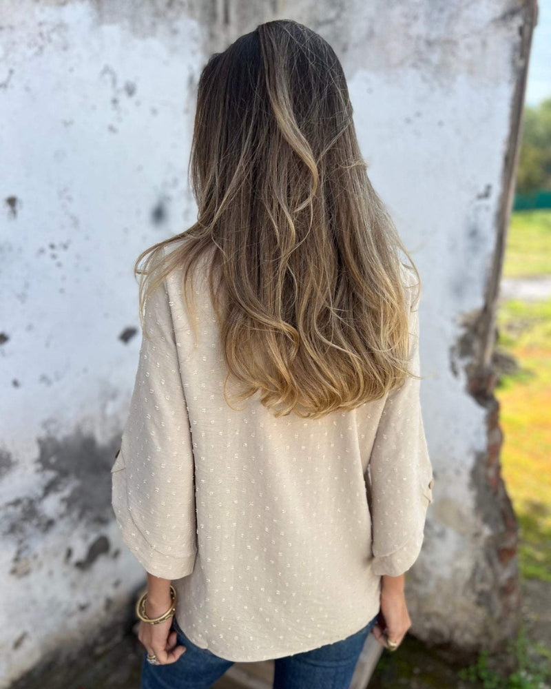 Designed with rolled-up buttoned sleeves and a relaxed silhouette, this blouse offers the perfect balance of elegance and comfort. Whether styled with tailored trousers for work or dressed down with jeans for a casual day out, it’s a versatile must-have for any wardrobe.